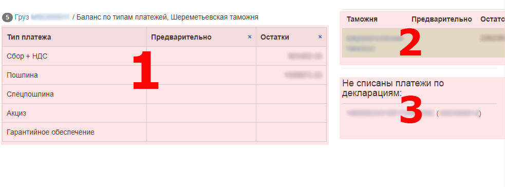 Баланс - предназначены для отображения текущих остаток по видам платежа в таможенном органе. Состоит из 3 разделов: