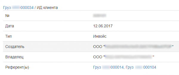 При обзоре идентификационного документа в разделе «референты» отображаются все грузы в которых был использован данный документ.