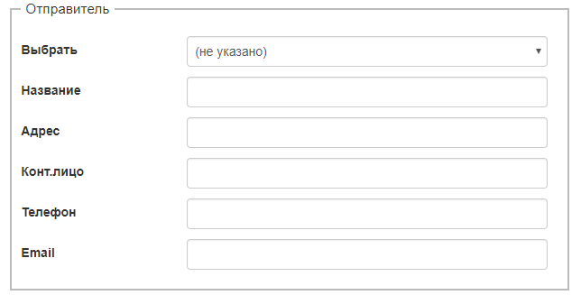Раздел Отправитель позволяет сохранить детальную информацию по отправителю, которая включает в себя:
