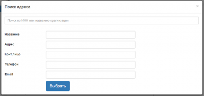 Для российских юридических лиц возможно заполнить наименование и адрес получателя путем ввода ИНН либо названия в свободной форме в всплывающем окне.