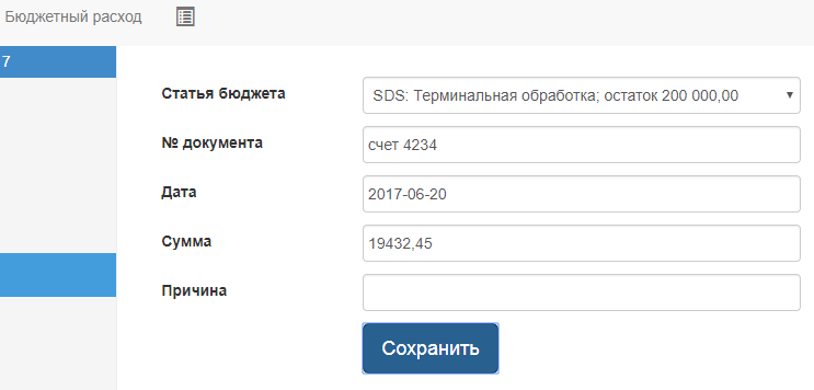 Для фиксирования расходов необходимо выбрать ту статью бюджета которая закрывает текущий расход и указать